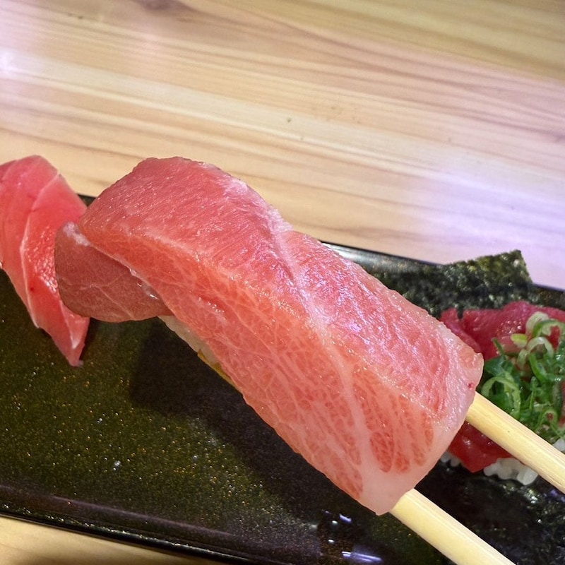天然本鮪、中トロ3貫をはじめ大トロなど7貫で1200円から(※店舗によりお値段は異なる)というお得に思える価格。年末、大阪の某店で食べてみた。