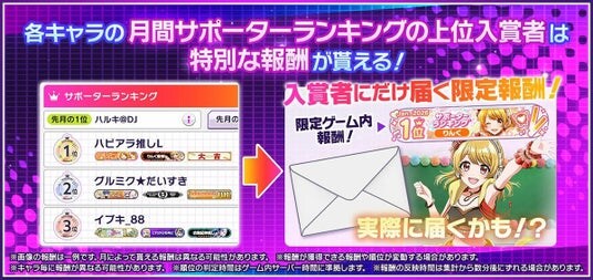 月間での集計となるサポーターランキングでは、上位入賞したサポーター(プレイヤー)に対し、さまざまな特典が用意されています。