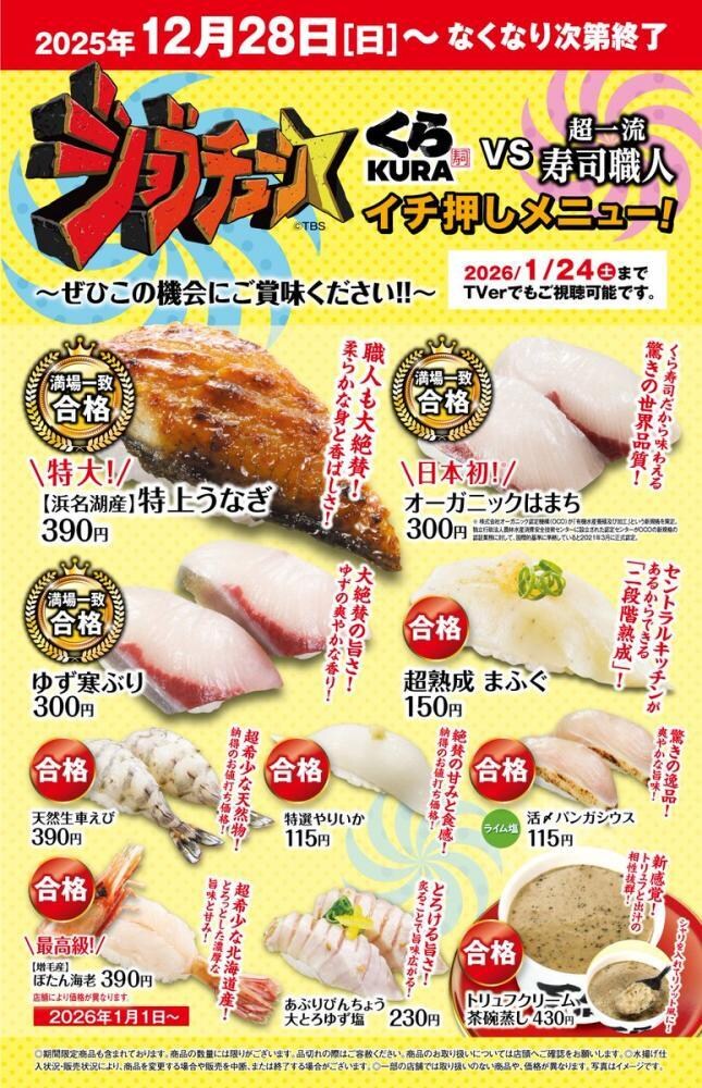 2025年12月27日放送の情報バラエティー番組「ジョブチューン~アノ職業のヒミツぶっちゃけます!」(TBS系)の人気企画に、くら寿司が2年ぶりに参戦しました。