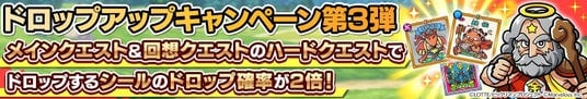 2026/1/6(火) メンテナンス後より、メインクエストおよび回想クエストの「ハードクエスト」を対象に、シールのドロップ確率が2倍にアップするキャンペーンを開始いたしました。
