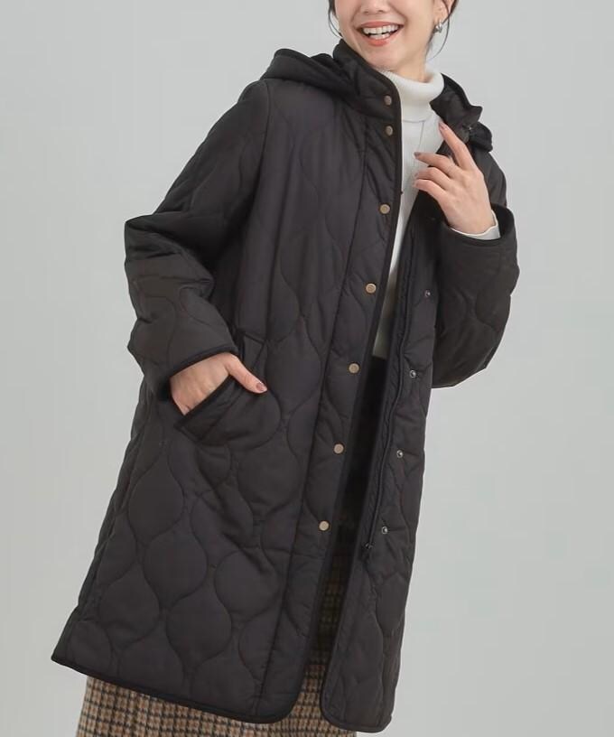 SHOO・LA・RUE「【撥水/フード取り外し可】冬に嬉しいこだわり満載 ひょうたん柄キルトコート」