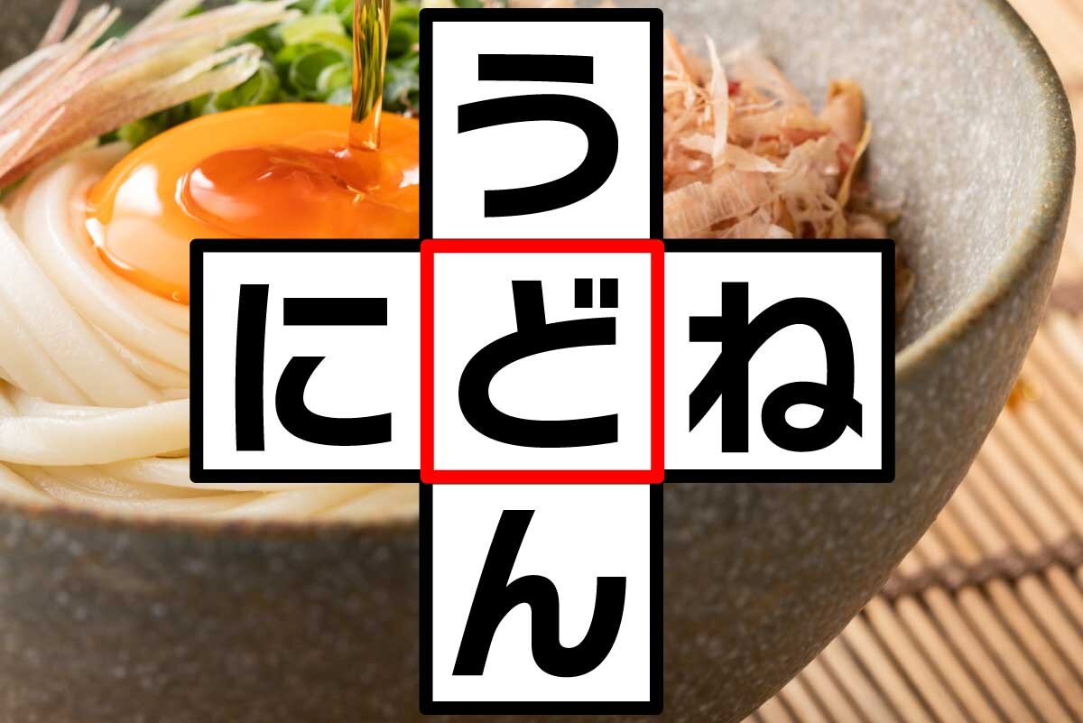 【問題】空欄に入るひらがなは? 【ヒント】タテ:小麦粉を練って長く切った、ある程度の幅と太さを持つ日本の麺のひとつ。 ヨコ:いったん起きたのに、再度寝てしまうこと。
