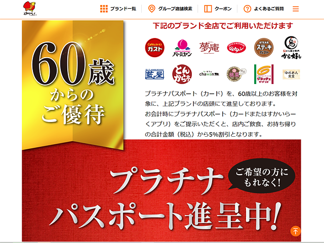 例えば、『ガスト』や『ジョナサン』、『バーミヤン』など複数のファミレスチェーンを展開するすかいらーくグループは、60歳以上の客を対象に店頭で「プラチナパスポート」を進呈。アプリ以外にも卓上の注文端末での操作、もしくはレジでスタッフにその旨を告げれば入手できる。