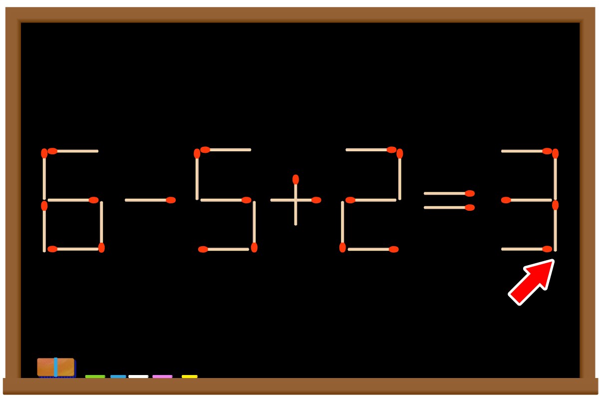 「2」の縦マッチ棒を1本、横に移動させて「3」を作る。