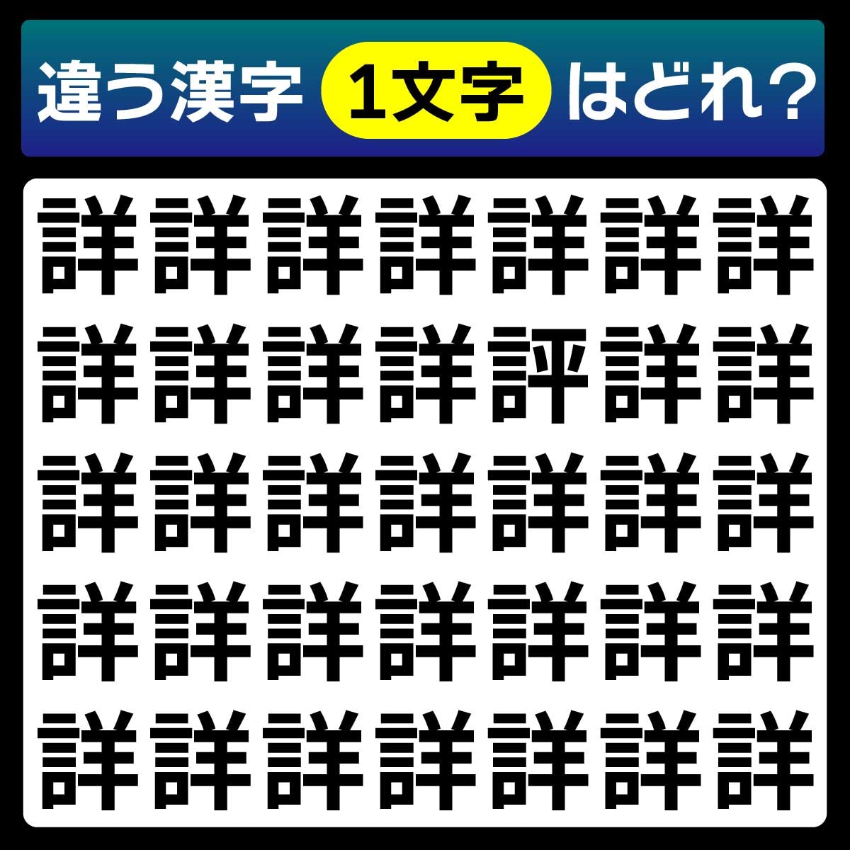 毎日配信中「毎日脳トレ」の時間です! 本日のクイズは「漢字のまちがい探し」に挑戦♪ 同じ漢字が並んでいるように見えますが、実は1つだけ違う漢字が……。よ~く探してみてください!
