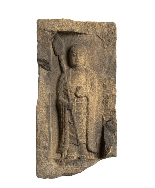 天守台石垣転用石仏/天守台の石垣で、実際に使われていた転用石材。石垣の解体修理をした際に、新しい石材と交換したもの。
