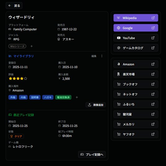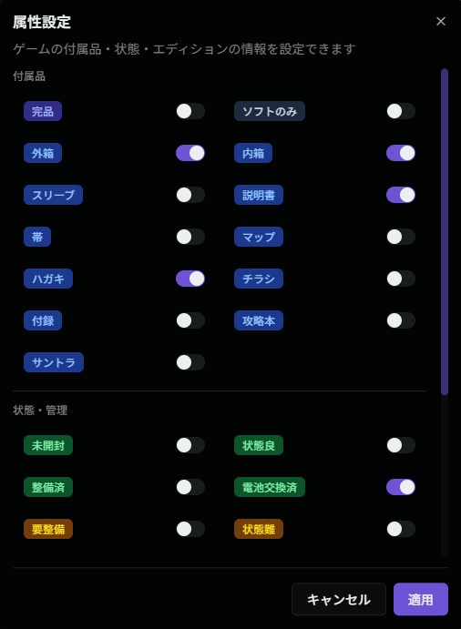 今回のアップデートでは、所有するゲームごとの属性をより細かく定義できる機能や、登録したデータの自由な取り出し(エクスポート)を実現しました。単なるリスト作成に留まらない、管理プラットフォームとしての本質的な利便性の向上を目的としています。