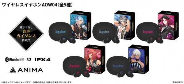 本コラボレーションモデルは、全5種類展開で「Team K」から銀星(CV:小林裕介)、「Team W」から晶(CV:沖野晃司)、「Team P」からマイカ(CV:村瀬歩)、「Team B」からリコ(CV:小笠原仁)、「Team C」からクー(CV:小林ゆう)のボイスは完全録り下ろしにてイヤホンに内蔵されます(全11ワード)。また本体は全種黒で統一、ゲームタイトルや各Teamロゴを各キャラクターの色で装飾した高級感があり普段使いができるワイヤレスイヤホンとなっております。