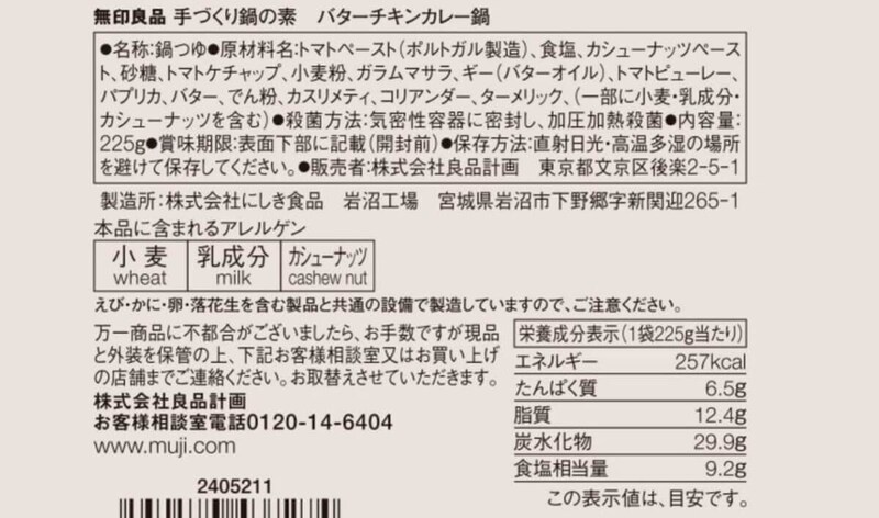 ■無印良品「手づくり鍋の素 バターチキンカレー鍋」が大人気!