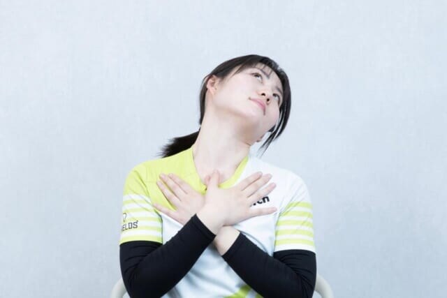 ▲両手で鎖骨の位置を下げながら、首を伸ばすイメージです
