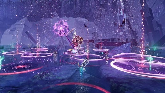 「異界戦線:凍土エリア峡江部」では新たなトライアル「アークラン妨害域エネミー討伐」、「急襲領域エネミー討伐」が発生します。それぞれプレイヤーにダメージを与えるオブジェクトが出現しますが、うまく活用することで戦闘を有利に進めることができます。