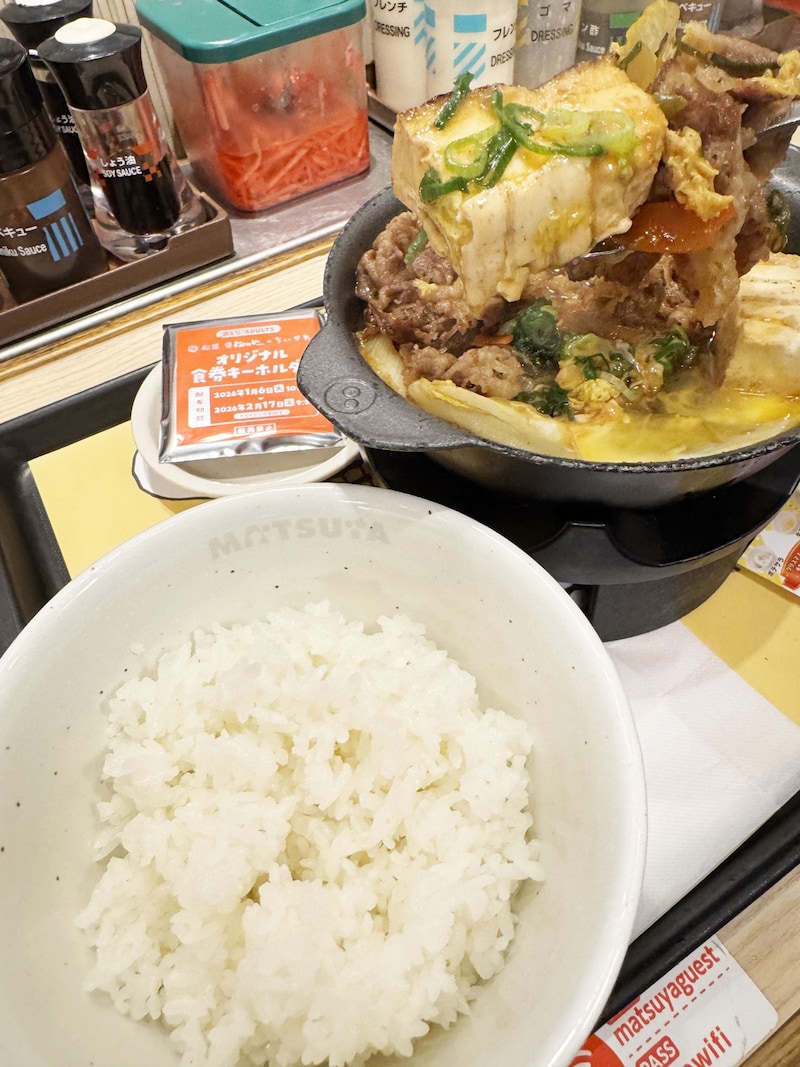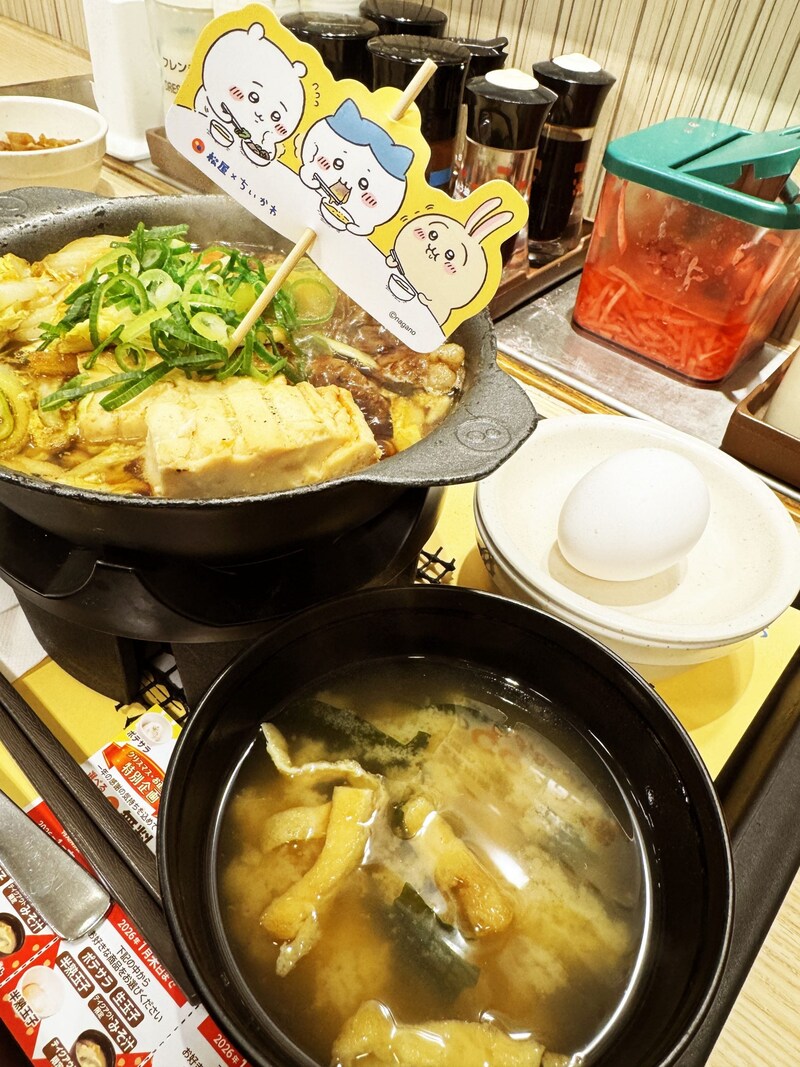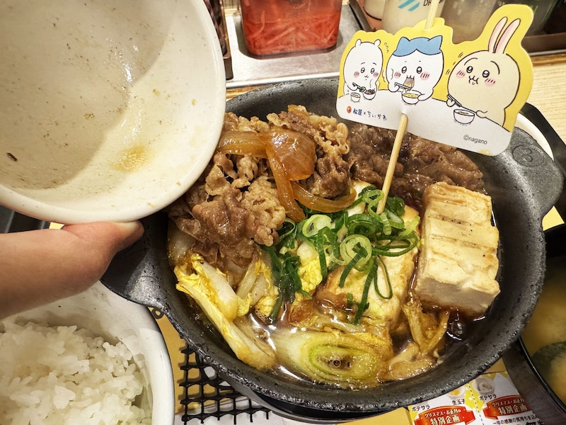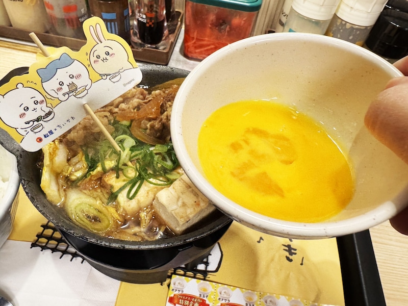 松屋の「ちいかわのすき焼き鍋膳」だけど、さらに美味しく食べる方法、あるわよ。