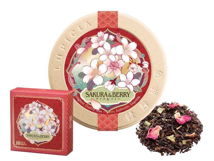 「サクラ&ベリー 紅茶」は、桜の葉と苺の甘い香りが溶け合い、ミルクティーにも好相性。50gデザイン缶入1,450円(税込)、ティーバッグ10個デザインBOX入1,250円(税込)です。