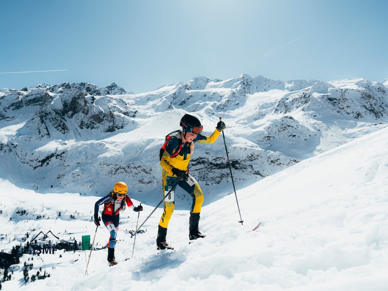 今大会では新種目として、山岳スキー「Skimo (スキーモ)が採用された。スキーモ(スキーマウンテニアリング)は、山岳地帯をスキーで登り、シールを外して滑走する動作を繰り返し、速さと体力、判断力などを競う山岳的な競技。ドロミテの悠大なマウンテンフィールドに格好のデビューともいえよう。