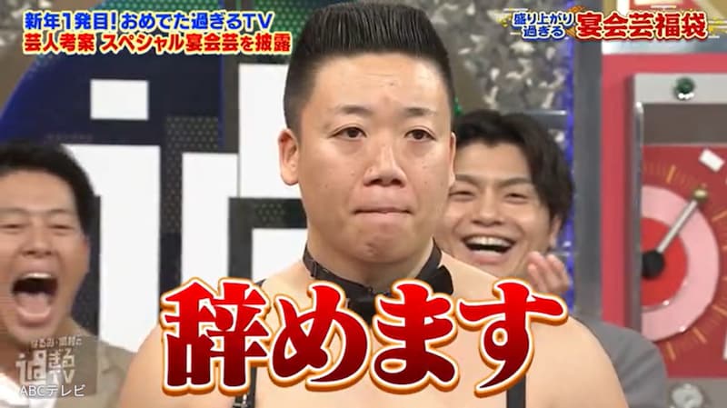 崖っぷち芸人たちが上半身裸になり、芸人人生を懸けた渾身の宴会芸を披露! ナインティナインの岡村隆史とタレントのなるみを爆笑させ、2人から高額お年玉をゲットするも、崖っぷち芸人の1人が芸能界を引退すると宣言し……!?