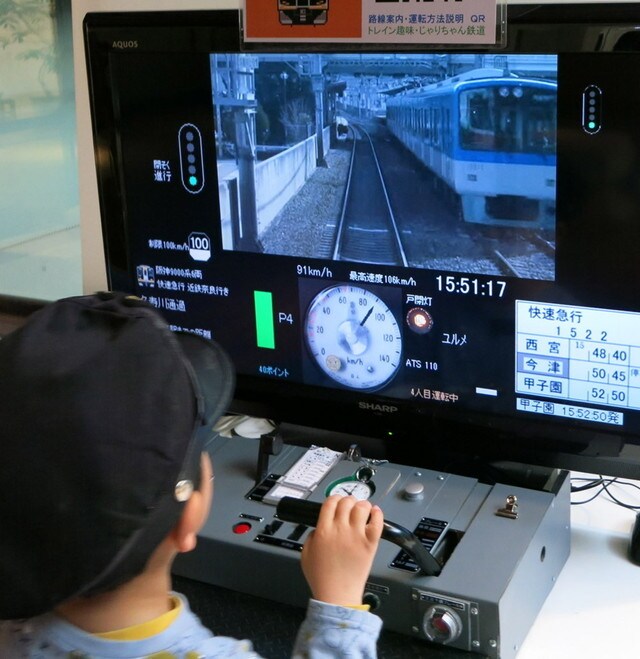 阪神、阪急、JRの電車運転シミュレーションが登場。リアルな運転台に座り、実写映像と走行音で、臨場感あふれる運転体験ができます。