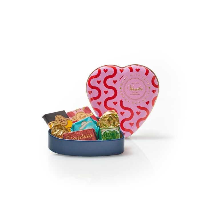 ハート缶ウェーブマイハート2,700円(税込)は、5種のチョコレート入りでさりげない贈り物に。