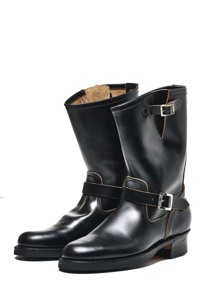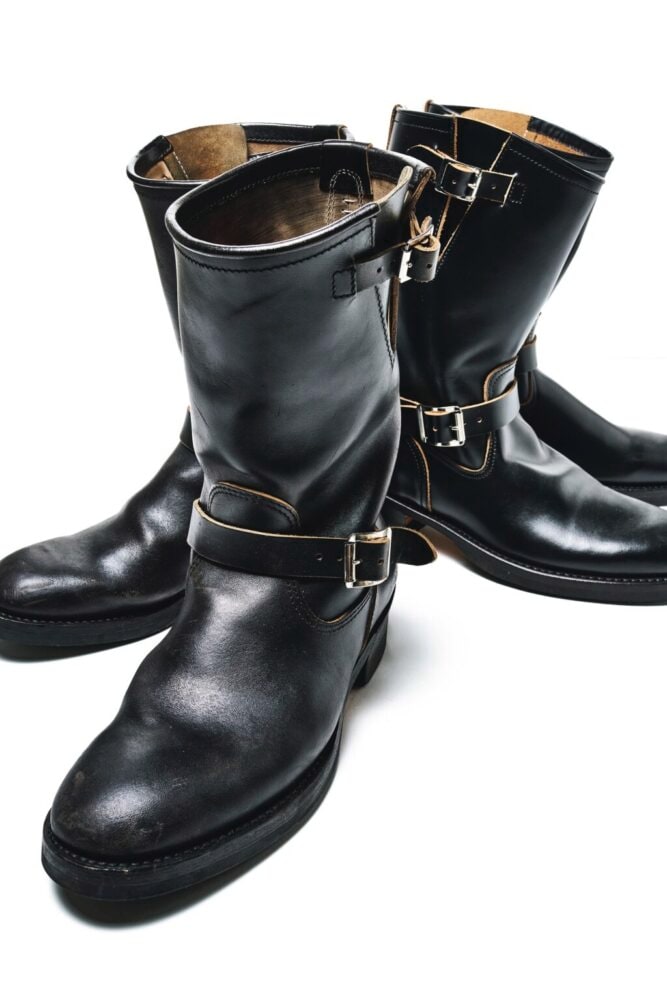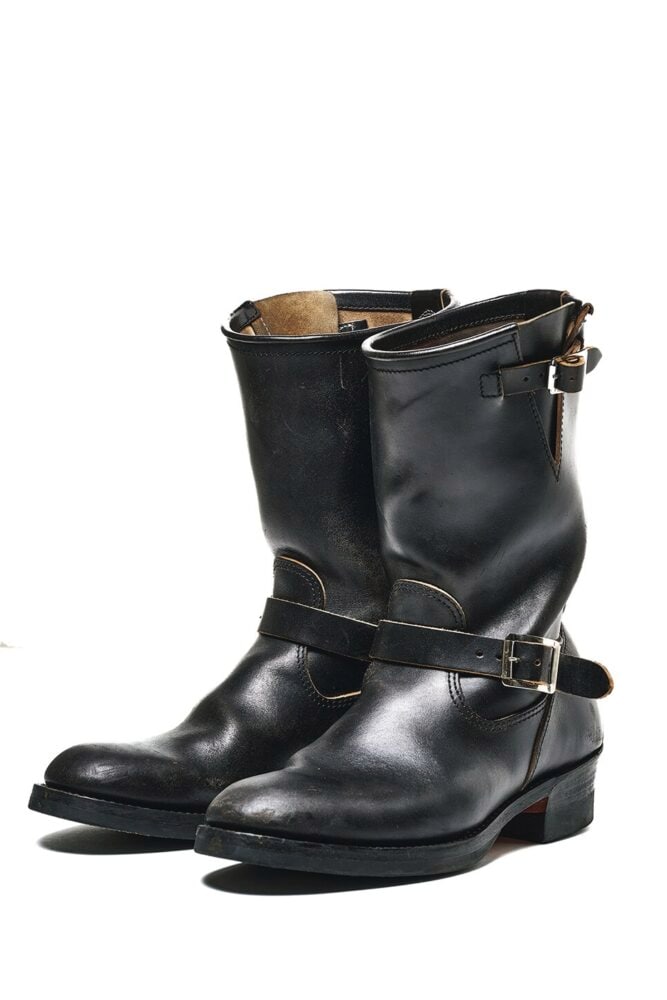 ライトニングに入った頃はロガーなどのレースアップブーツも履いていたが、ここ20年くらいは靴紐のないエンジニアやペコスなどのプルオンしか履いていない。だってラクなんだもん。座敷の居酒屋、海外出張時の飛行機……エンジニアの脱ぎ履きのしやすさは、マジでクセになる。