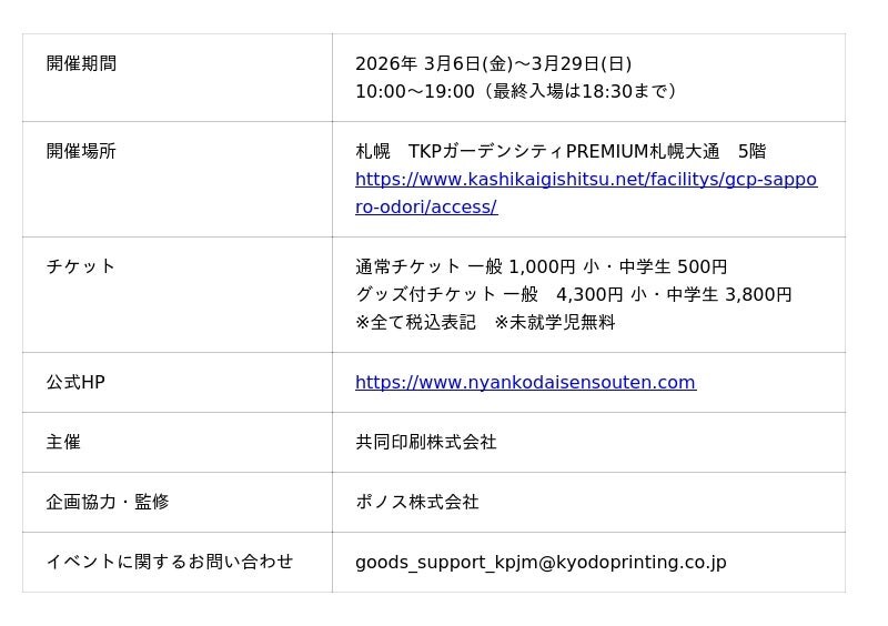 【『みんなで出撃!にゃんこ大戦争展』 札幌会場 開催概要】