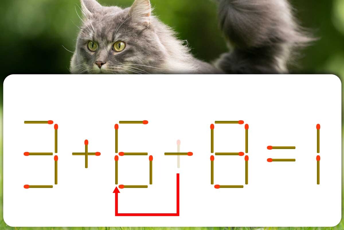 「+」のマッチ棒を1本、「5」に移動させて「6」を作り、「3+6-8=1」にする。※解答は複数ある場合があります。