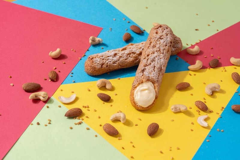 片手で持ちやすいスティック型のシュー生地に、カシューナッツやアーモンドを使ったクロッカン生地をのせて焼き上げ、香ばしさとザクザク食感が手軽に楽しめます。
