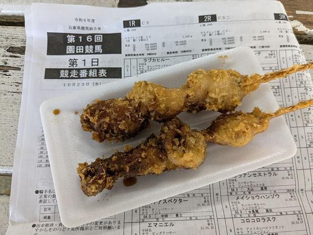 さらにサワー、ハイボール400円と、場内は立ち飲み屋もビックリの激安食堂街である。加えて当場にはナイター開催を応援するご当地アイドルグループ『SKNフラッシュ8』がいて、時々スタンドでオッサン客に紛れて予想動画を撮影してたりで楽しい! そして当たる!! このまま最終レースまで的中したらどうなる(死ぬか?)と怖いぐらいだったが、第10、第11Rとハズして人生そんなに甘くないと思い知り、本日はここまでと競馬場をあとにした。