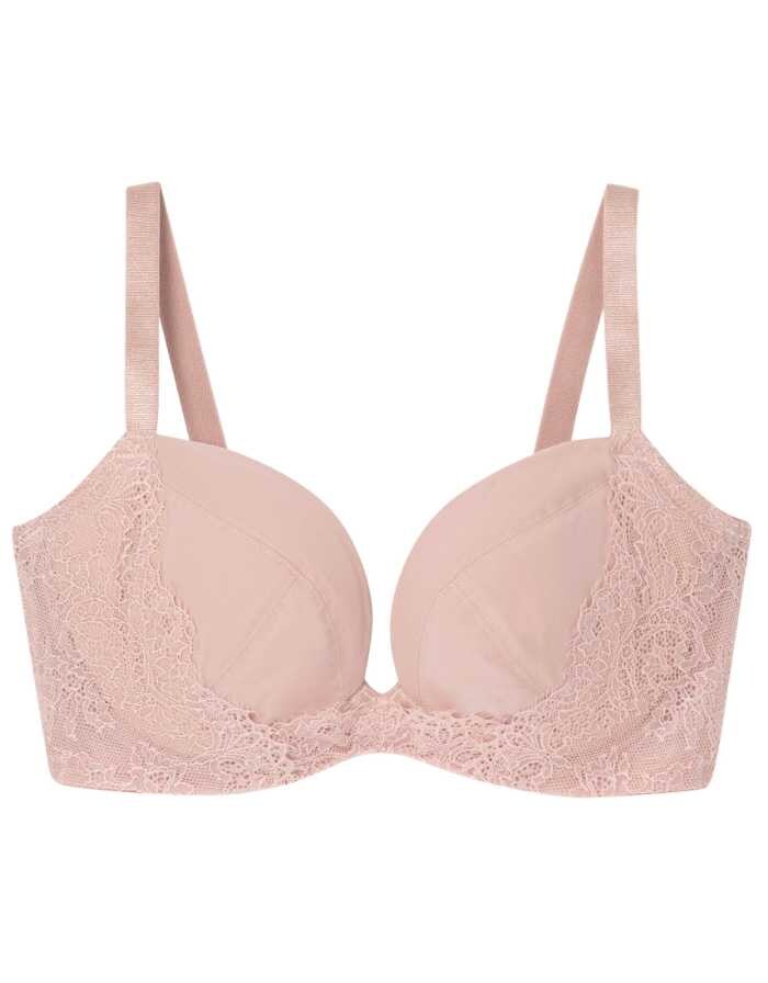 累計販売枚数240万枚超(※1)の大人気[小さく見せるブラ]シリーズに、初のノンワイヤータイプが仲間入り。高密度不織布がバージスラインを支え、ワイヤーなしでもバスト位置をキープ。