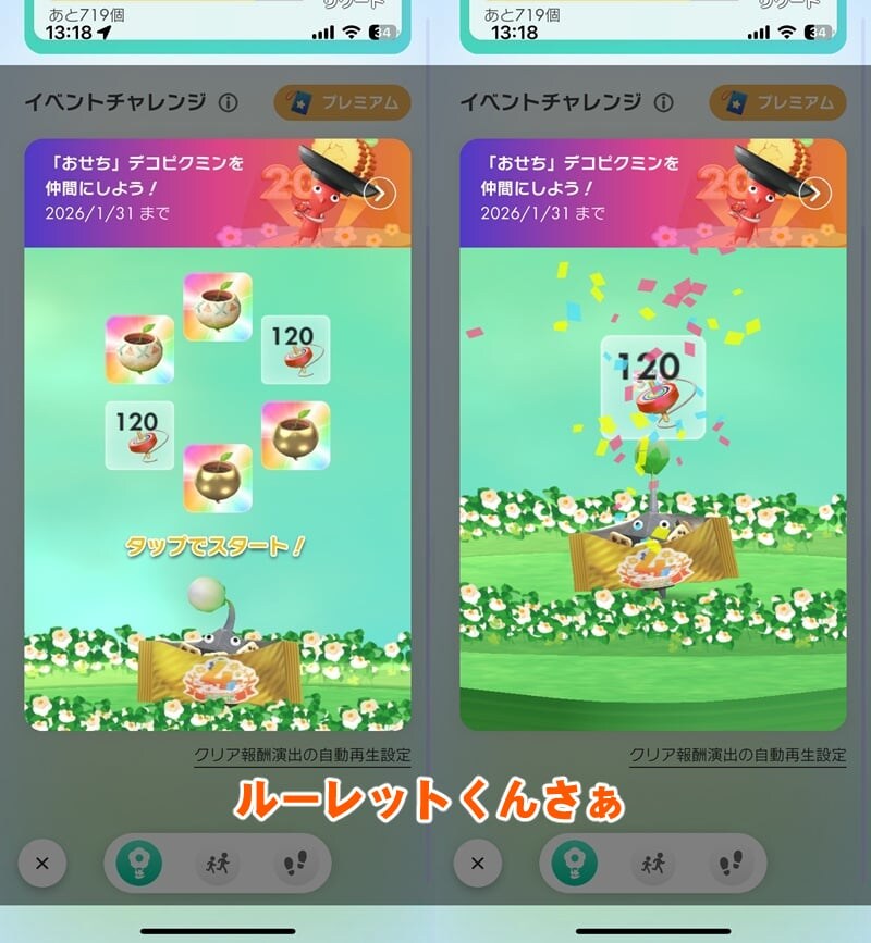 元日におせちの青ピクミンを入手して以降、あいかわらずルーレットに嫌われる毎日。