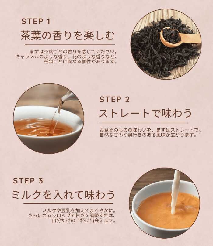 MEI TEAの最大の魅力は、一人ひとりに合わせたカスタマイズ。牛乳や豆乳はもちろん、オーツミルクやアーモンドミルク(+50円)まで選べる幅広さが嬉しいポイントです。