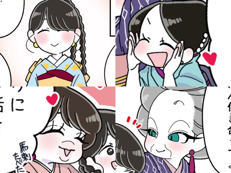 左上から、モジョ子、コミ、マキさん、ママ(漫画:おくげちゃん)