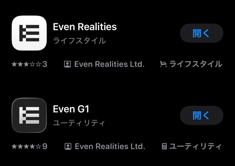 そういえば、最初に書き忘れたが、このEven G2では、以前の『Even G1』というアプリではなく、新しいEven RealitiesというアプリをiPhoneにインストールして使う。
