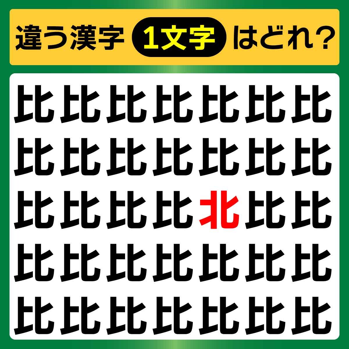 違う漢字は、上から3列目、右から3番目の文字でした!