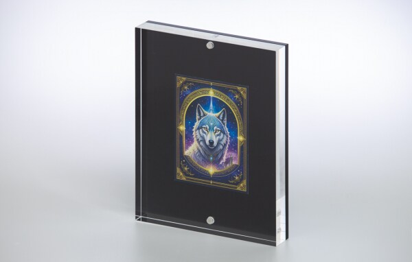 表板に15mm、裏板に5mmの計20mmのアクリルを使用。奥行きのある層の中で写真が宙に浮いているかのような演出を可能にしました。
