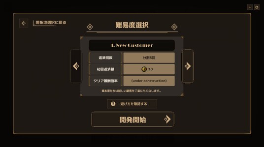 高難易度では借金額が増え、ゲーム内の機能が制限される