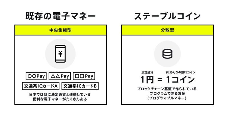 図2:既存の電子マネー(スマホ決済/電子マネー)とステーブルコイン