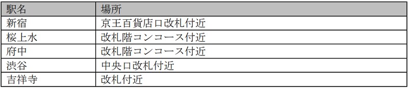 京王線:新宿駅(京王西口 券売機窓口)、桜上水駅(改札窓口)、府中駅(北口改札窓口)