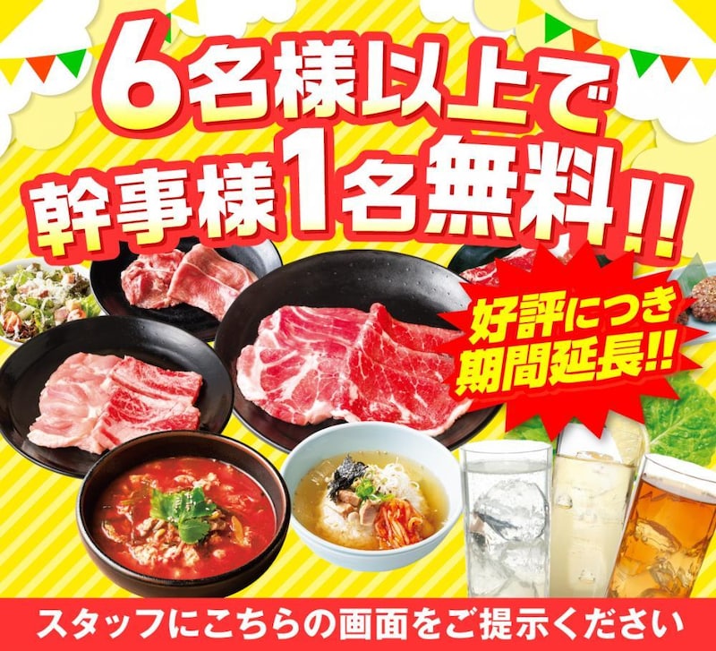 1月10日から12日までの期間中、焼肉と一緒に楽しめる飲み放題メニューが半額に。