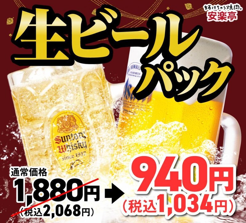 また、生ビールパックは、通常価格1880円(税込2068円)が940円(税込1034円)に。