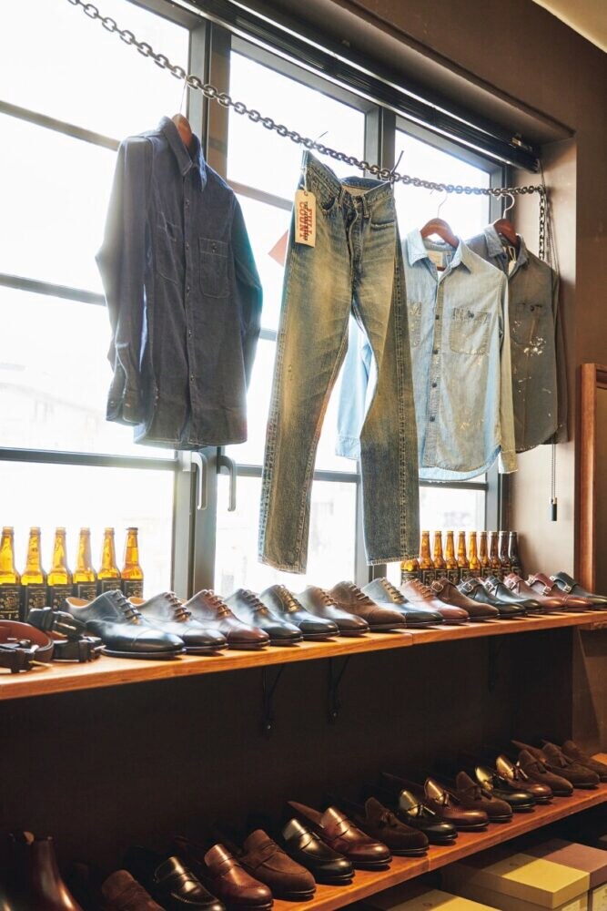 取り扱うシューズはバーウィック1707、ウィールローブ、オリエンタル、ブラックストック&ウェーバー、TLBといった、欧米や日本の名門シューメーカーの紳士靴がメイン。ドレスからカジュアルまで志向も幅広い。現在では、靴以外のウエアやアクセサリーも充実。フルカウント、ブラックサイン、サウンドマン、ヴァスコ、ミスターファットマンといった日本のヘリテージブランドや、バブアー、エイチ・バー・シーなど欧米ヘリテージが揃う。シューストアとしての矜持を持ちながら、スタイルを提案するセレクトストアとして、今年10周年を迎えた。