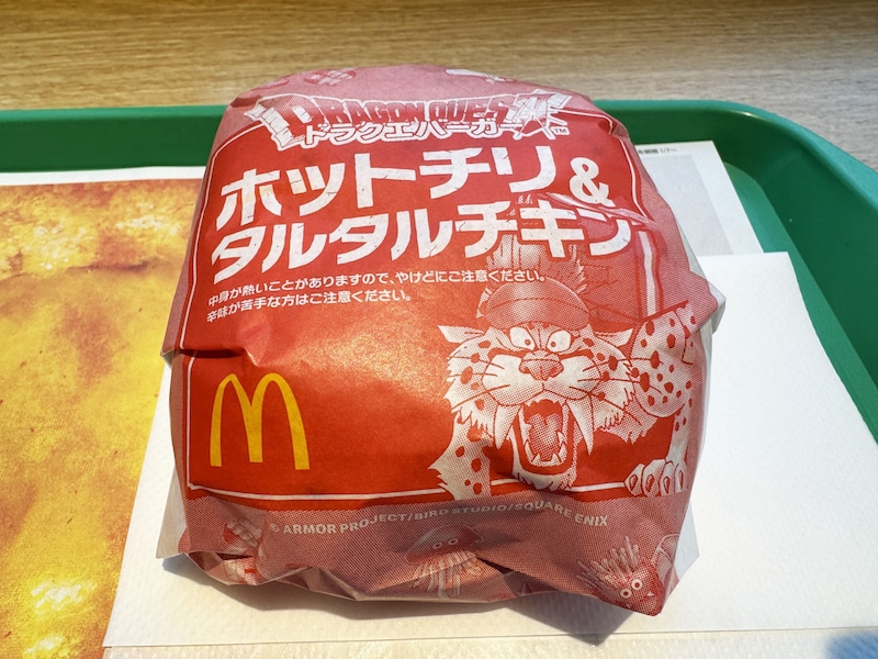 マクドナルドのドラクエバーガー「ホットチリ&タルタルチキン」を食べました。ドラクエ、つまり人気ゲーム「ドラゴンクエスト」シリーズとコラボレーションしたバーガーです。ぎょえーーっっ!!