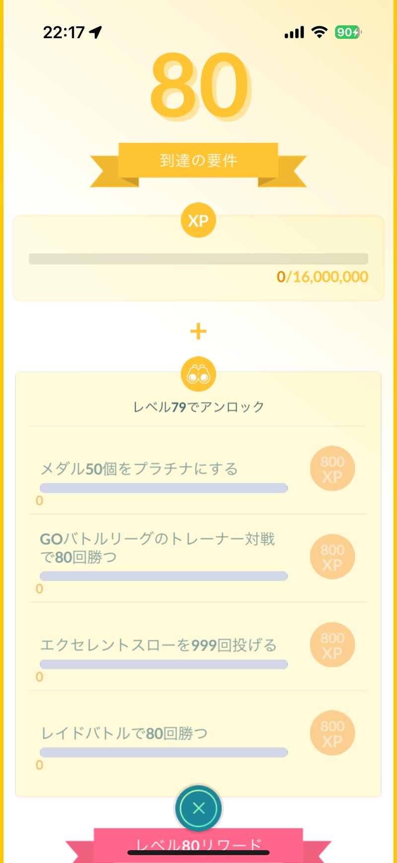 ▲トレーナーレベルの最高峰であるTL80到達へはトータルで2億XP以上が必要。エクセレントスローを999回投げるというタスクもあるので、TL80までを効率よく進めるには必須クラスのフィールド効果となっています。