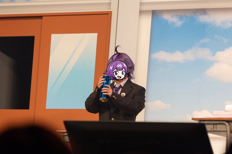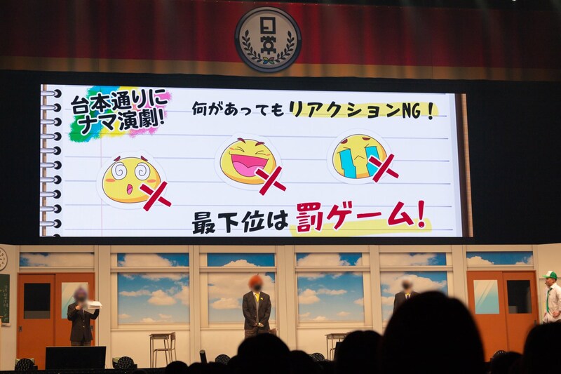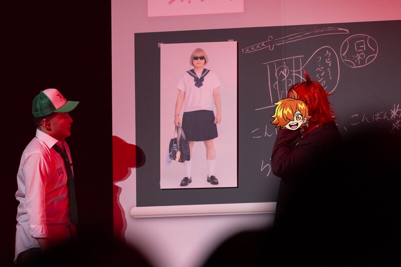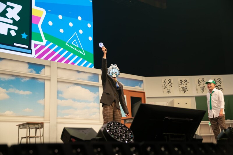 さらには生徒会長として、人気実況者M.S.S ProjectのFB777がセーラー服を着た姿で特大プレートに印刷されて登場し、さらにFB777の笑い声の録音が流れるなど、予想外過ぎる演出で会場も爆笑の渦に巻き込まれる。