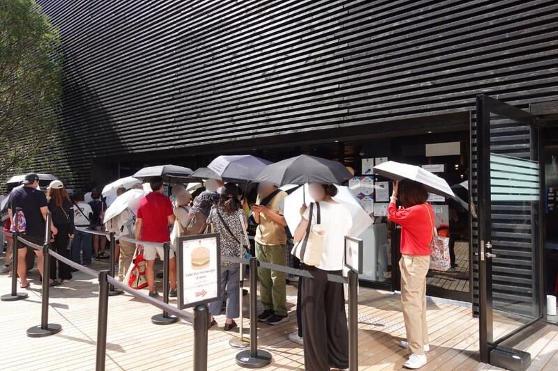 店内に一歩足を踏み入れると別世界。ハッブル宇宙望遠鏡やジェイムズ・ウェッブをモチーフにした装飾が広がり、アメリカパビリオンの未来的なムードと呼応するドラマティックな空間が迎えてくれます。また、外のテラスではテイクアウトのバーガー片手に気軽な時間を楽しめます。