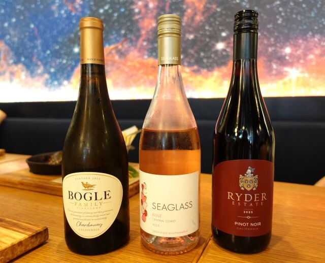 左から「ボーグル シャルドネ」、「シーグラス ロゼ」、「ライダー ピノ・ノワール」