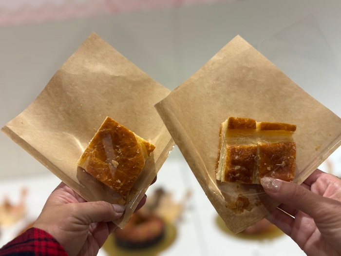 焼きあがり時間前になると、整理券が配布され、焼きたてのガレット・デ・ロワを購入する事ができます。ザクッと食べ応えのあるパイ生地に、たっぷりのアーモンドクリームが後をひく美味しさです。