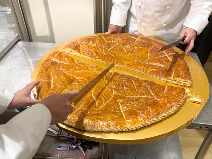 会場でも圧巻の存在感の、特大サイズの「ガレット・デ・ロワ」は、切り分けられて、ふるまいガレットとして、来場者に振る舞われました。(ふるまいガレットは、1月9日のみの配布)