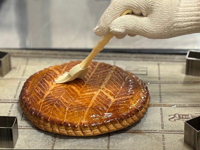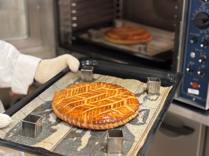 1日6回実演販売にて提供される、「焼きたてガレット・デ・ロワ」。