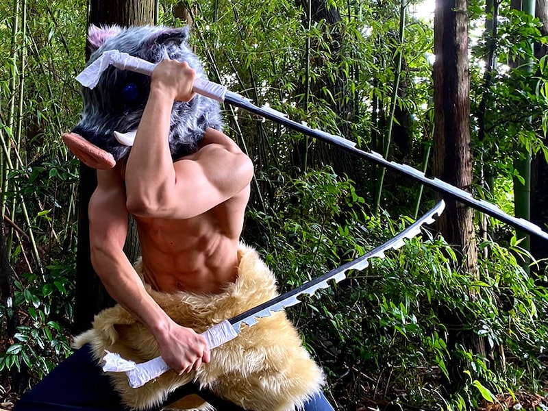 【画像】え…っ!「筋肉美やばっ」「素顔もイケメン」 こちらがクオリティー高過ぎな『鬼滅』伊之助のコスプレです(12枚)