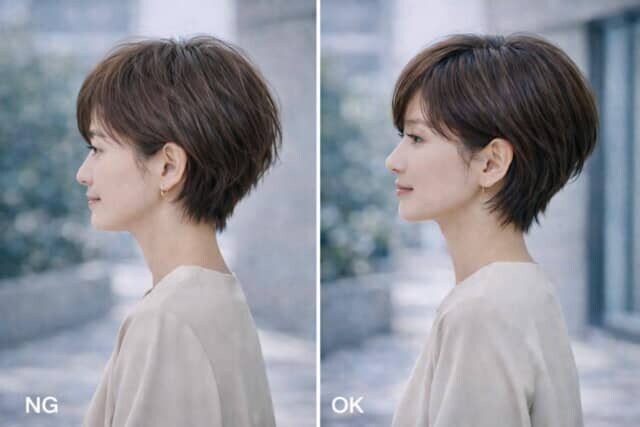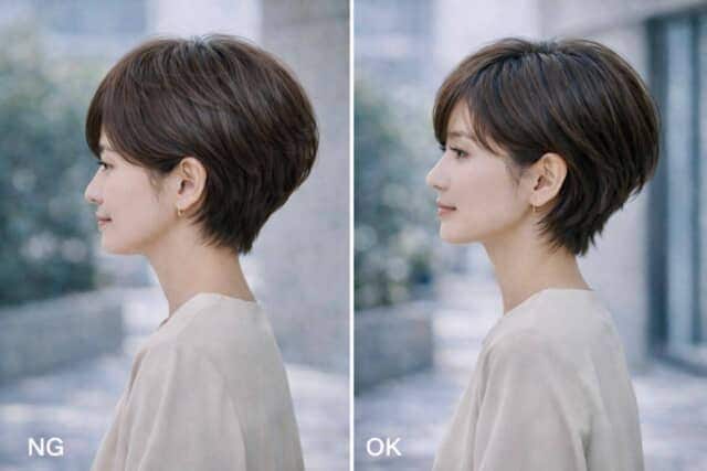 特にトップから後頭部にかけて厚みが集中すると、全体の重心が後ろに下がり、横顔がもったり見える原因に。今年は“盛る”よりも、自然な奥行きを感じさせるバランスが主流。丸みは残しつつも、主張しすぎない設計が求められます。