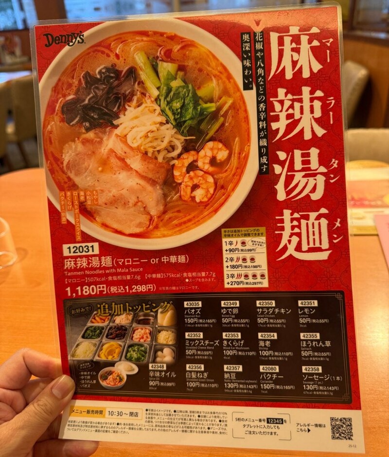 12月中旬には、おなじみレストランチェーン「デニーズ」にも麻辣湯麺が登場。